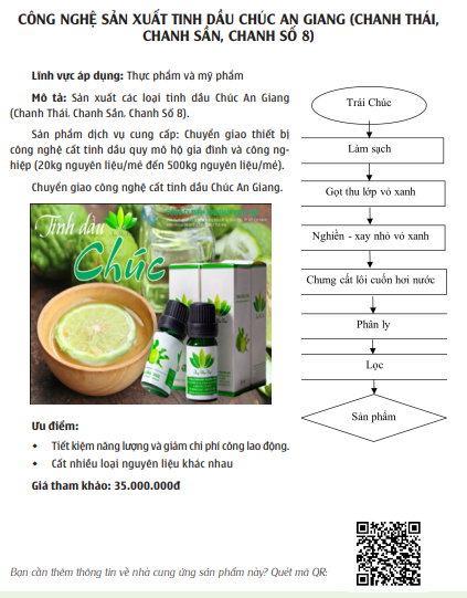 Mô tả: Sản xuất các loại tinh dầu Chúc An Giang