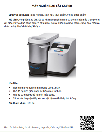Mô tả: Máy nghiền dao GM 300 có khả năng nghiền nhỏ và đồng nhất mẫu trong vòng