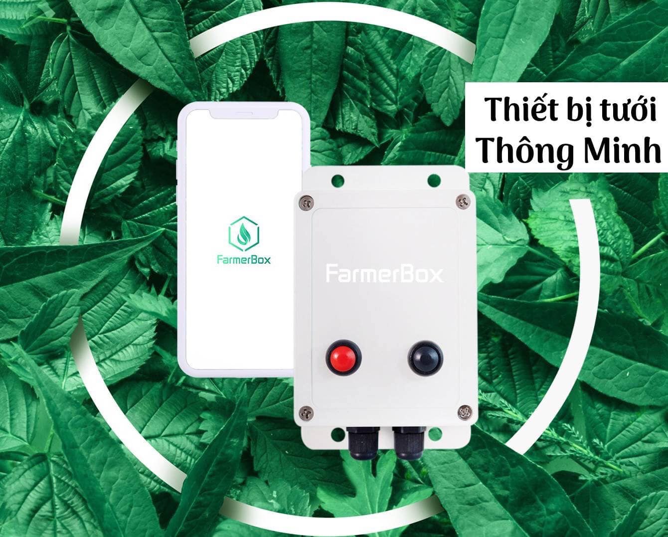 Thiết bị FarmerBox sẽ được lắp đặt tại vườn để điều khiển toàn bộ hệ thống bao gồm việc tưới nước, theo dõi độ ẩm và nhiệt độ môi trường thông qua ứng dụng FarmerBox