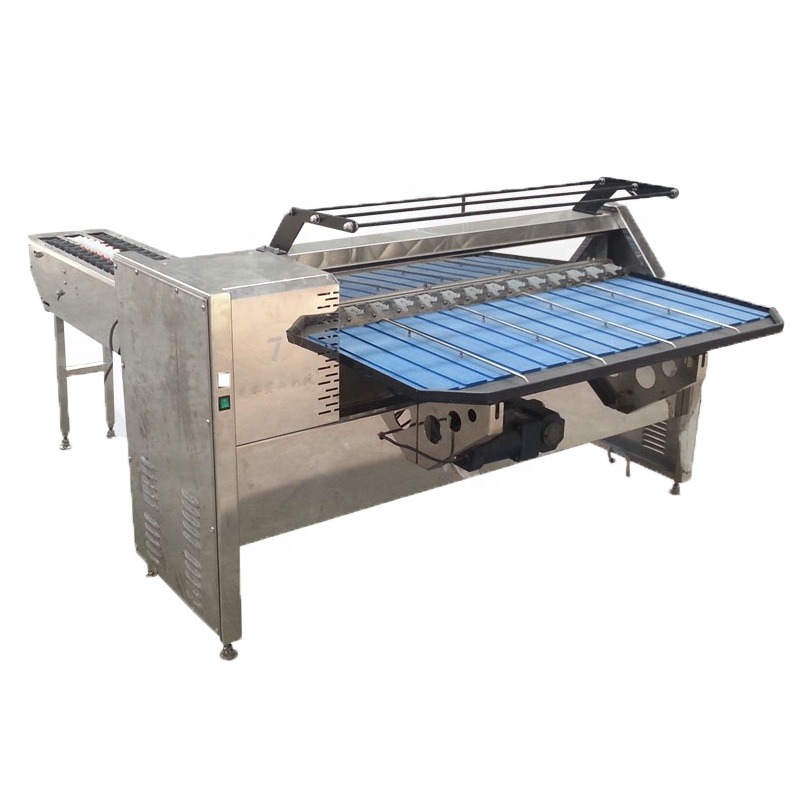 Phân loại theo kích thước và trọng lượng: Trứng được đưa lên băng tải và di chuyển qua các bộ phận cảm biến quang học hoặc cân điện tử. Các cảm biến này sẽ đo kích thước và trọng lượng của từng quả trứng, sau đó phân loại chúng vào các khay theo các kích thước và trọng lượng đã được cài đặt sẵn.